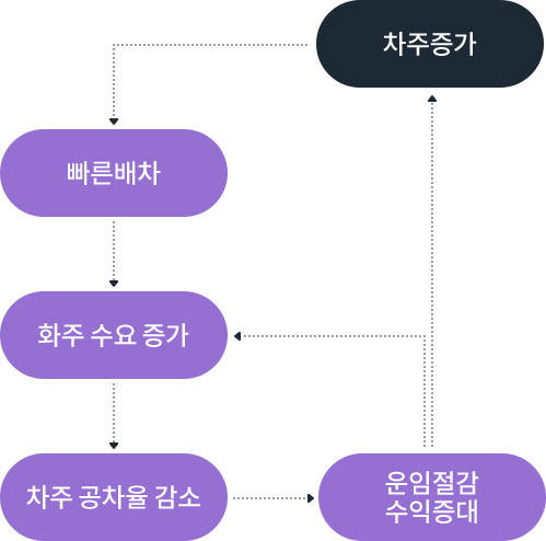 빠른 정산을 함으로서, 많은 화주를 확보하여 화주-오라이-차주가 모두 상생하는 선순환 생태계를 구성하고자 합니다.