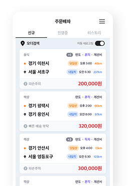 운송완료 등록 후 국내 최초로 24시간 이내에 운송 운임을 정산해 드립니다. 오라이는 차주님들에게 양질의 오더를 제공하고